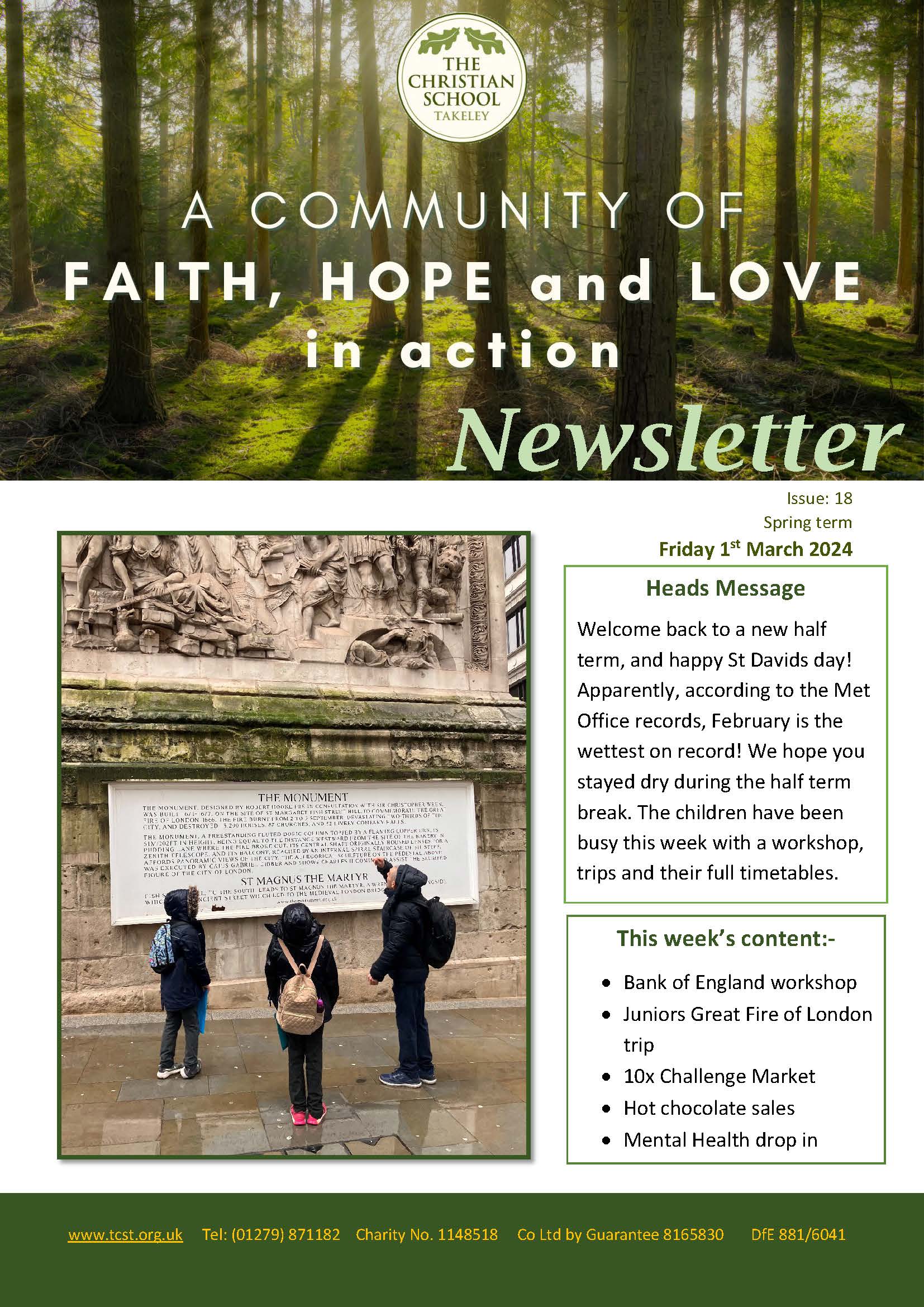 Welcome back to a new half term, and happy St Davids day! Apparently, according to the Met Office records, February is the wettest on record! We hope you stayed dry during the half term break. The children have been busy this week with a workshop, trips and their full timetables.